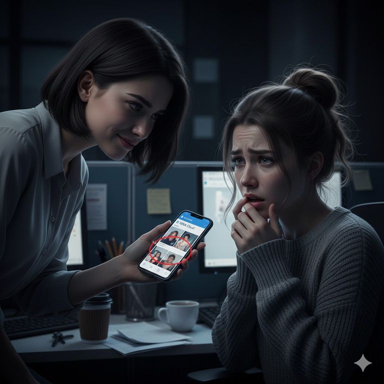 퇴사한 직원이 회사 클라우드에 남긴 사적인 사진을 동료가 발견해 다른 직원에게 보여준 행위를 두고 범죄 성립 여부 논란이 있다. / AI 생성 이미지