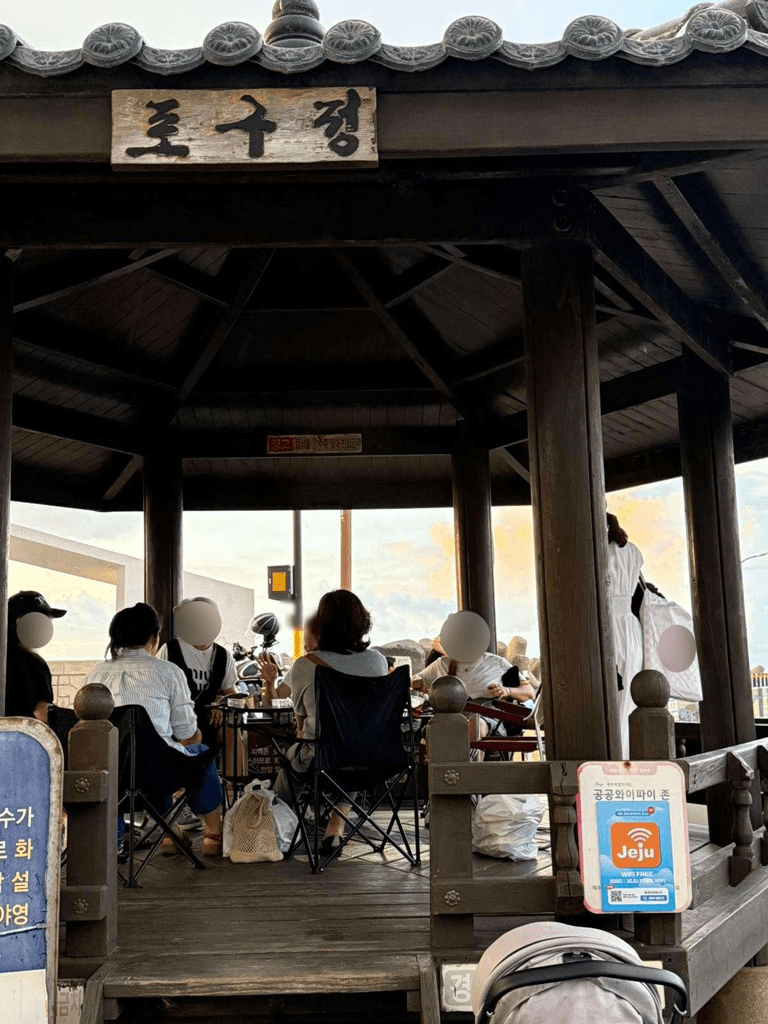 사건은 지난 1일 제주 현사포구의 한 정자에서 발생했다. 한 온라인 커뮤니티에는 "비를 핑계로 여성분들이 캠핑 의자와 테이블을 들여와 신발도 벗지 않고 정자를 독차지했다"는 내용의 글과 사진이 올라왔다. 사진 속 중년 여성들은 정자 안에 캠핑용 탁자와 의자를 펼쳐놓고 음식을 먹으며 담소를 나누고 있다.