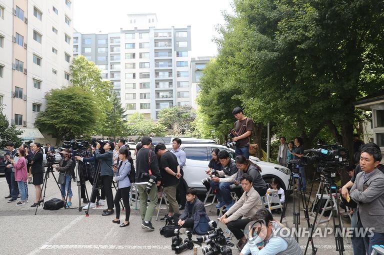 23일 검찰이 압수수색 중인 조국 법무부 장관의 서울 서초구 방배동 자택 앞에 취재진이 대기하고 있다. (신준희 기자) /저작권자 (C) 연합뉴스