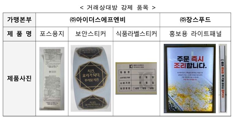 포스용지, 식품라벨스티커 등 거래 강제한 '푸라닭', '60계' 가맹본부에 시정명령 부과