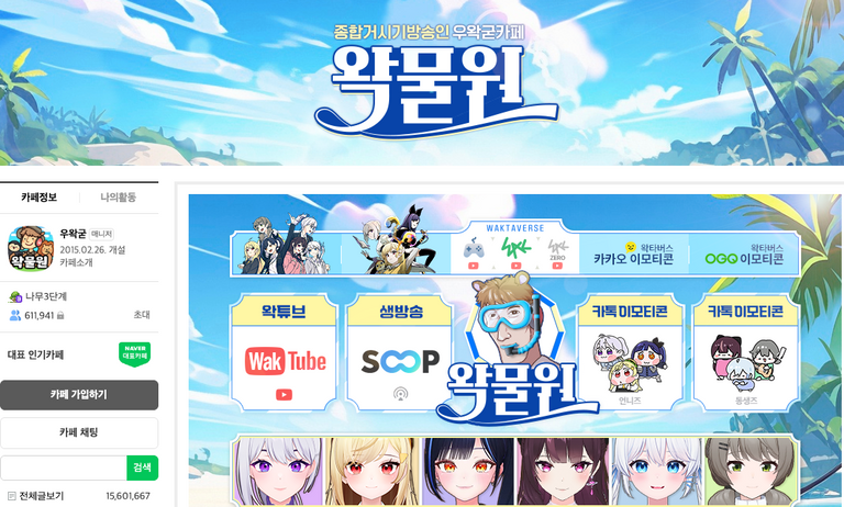 유튜버 우왁굳 팬카페 왁물원 모습. /왁물원 캡처