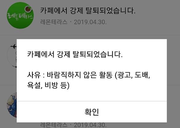 지난 11일 네이버에는 ‘온라인 카페 강퇴(강제 탈퇴), 활정(활동 정지) 피해자들 모임’이란 카페가 개설됐다. 카페는 개설 5일만에 회원 640여명이 모였다. 맘카페 댓글창 및 강퇴 화면을 캡처하는 등 수집 중인 피해 증거 사례도 현재 97건에 달한다. 변호사 섭외를 마쳤다는 공지도 올라오는 등 구체적인 소송 절차와 계획을 논의하고 있는 것으로 파악된다.