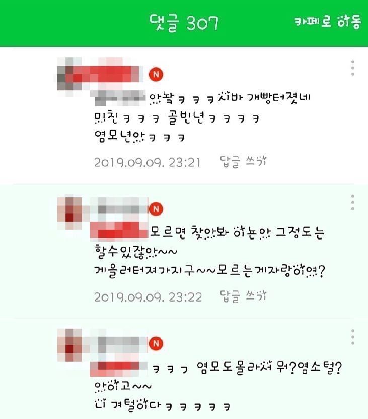 실제로 일부 맘카페에서는 조국 장관 비판 글이 올라온 지 1시간도 채 되지 않아 ‘개짓거리’, ‘골빈 X’, ‘알바열일’ 등 비방 댓글이 줄줄이 달리다가 게시물이 삭제됐다. ‘애 엄마는 선동하지 말고 애나 키워라’는 비방과 함께 개인정보가 유출됐다고 제보한 한 회원은 해당 카페에서 ‘바람직하지 않은 활동’이란 이유로 강제 탈퇴됐다고 제보했다.