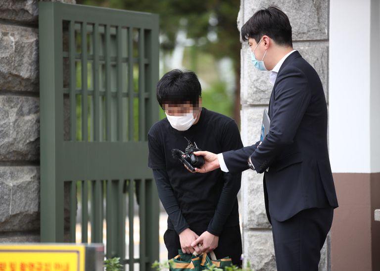 세계 최대 아동 성착취물 사이트 '웰컴투비디오' 운영자인 손정우가 지난 6일 법원의 미국 송환 불허 결정으로 석방되어 경기도 의왕 서울구치소를 나서던 중 취재진을 향해 고개를 숙이고 있다. /연합뉴스