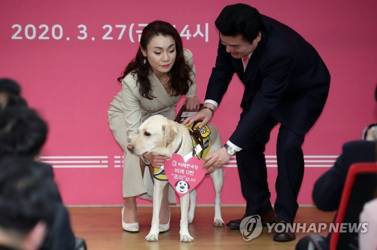 시각장애인 안내견 '조이'. 이번 21대 총선에 당선된 미래한국당 김예지(39) 당선인의 동반자다. 이로써 '조이'는 대한민국 헌정 72년 역사에서 처음으로 본회의장에 발을 디딜 '동물'이 될 것으로 보인다.