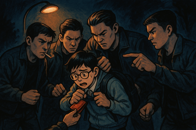사건은 늦은 밤 10시, 한적한 길가에서 벌어졌다. 중학생 A군은 길에서 담배를 피우던 고등학생 5명에게 붙들렸다. 5명에게 둘러싸인 A군은 순식간에 제압당했고, 그중 한 명은 A군의 몸을 강제로 뒤져 물건을 빼앗아 자기 주머니에 넣었다. 이들은 “다음에 걸리면 돈을 내놓으라”는 협박까지 서슴지 않았다.