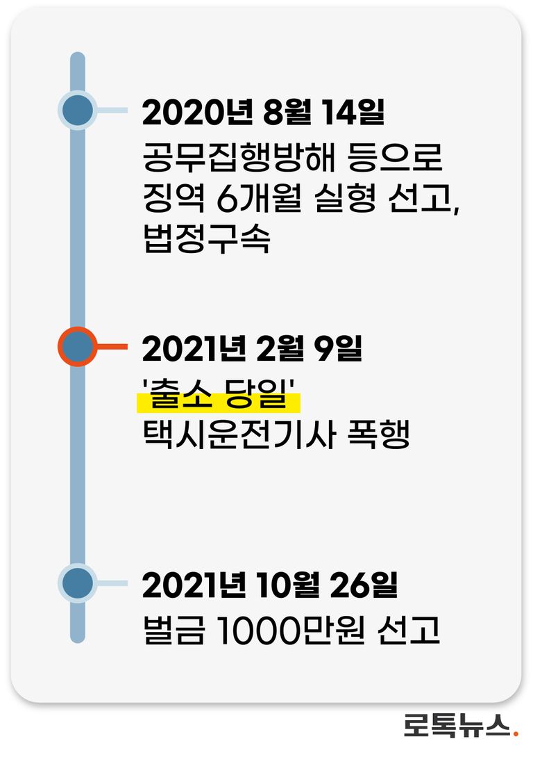 공무집행방해로 6개월 복역 후, 출소 당일 택시 기사 폭행