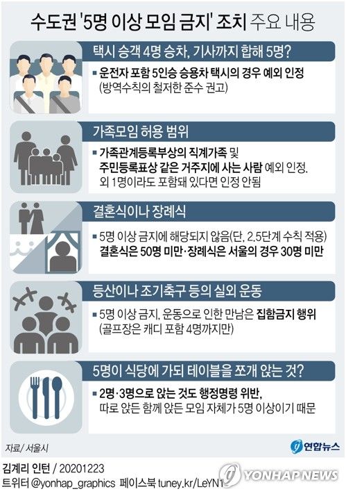 서울⋅경기⋅인천 등 수도권 5명 이상 집합금지 명령