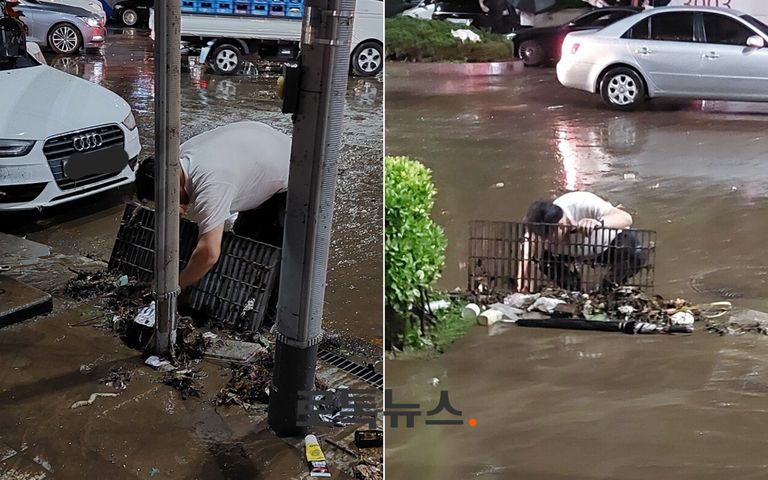 그는 우산도 없이 빗물받이를 들어 올려 배수로에 쌓여있던 쓰레기를 건져냈다. 게시물 작성자는 "A씨 덕분에 종아리까지 차올랐던 물이 금방 내려갔다"며 "슈퍼맨이 따로 없다"고 적었다.