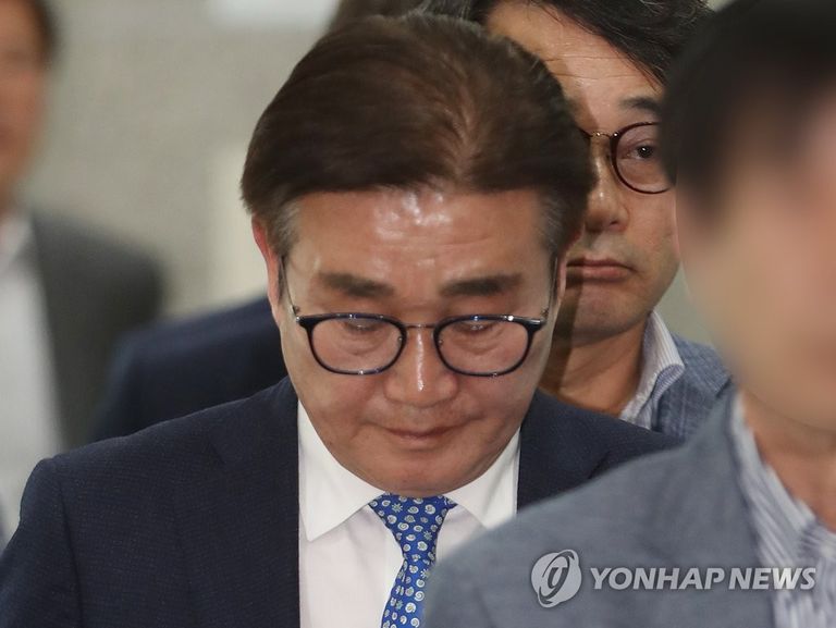 지난 4월 1심서 당선 무효형인 벌금 500만원을 선고받은 김일권 양산시장이 법원을 빠져나오고 있다 / (사진 = 홍기원 기자) / 저작권자 (C) 연합뉴스