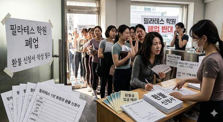 1년 회원권을 끊은 필라테스 학원이 갑자기 폐업하며 환불 신청서 작성을 요구했다.