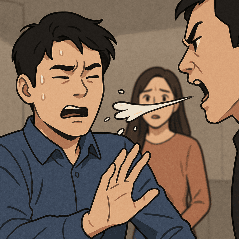A씨는 상대방이 뱉은 침 때문에 감기가 옳았다며 변호사에게 상해죄 고소 가능성을 물었다./챗 지피티 생성 이미지