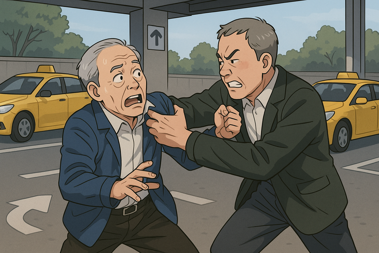 창원의 한 주차장 출구. 칠순을 넘긴 택시기사 두 명이 뒤엉켜 실랑이를 벌였다. 한 명은 옷이 찢어질 정도로 격하게 흔들렸고, 다른 한 명은 상대의 멱살을 움켜쥐고 버텼다. 겉보기엔 영락없는 쌍방 폭행이었지만, 법원의 판단은 달랐다. "멱살을 잡은 건 때리려는 게 아니라, 살기 위해 버틴 것"이라는 결론이었다.