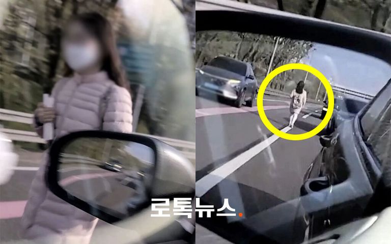 로톡뉴스는 해당 영상이 사실이라는 전제로 변호사들과 분석해봤다. 먼저, 여성 A씨의 행동은 당연히 불법이다. 올림픽도로는 자동차 전용도로다. 이곳을 차량이 아닌 보행자가 통행하거나, 횡단하는 건 도로교통법 위반(제63조)이다. 이를 위반할 시 30만원 이하의 벌금 등으로 처벌될 수 있다(제154조 제6호).