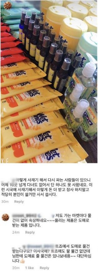 현재 정부는 코로나19로 인해 보건 용품 공급이 원활하지 않자 지난달 5일부터 마스크와 손 소독제 등에 대한 매점매석 행위를 처벌하는 고시를 시행하고 있다. 최근 100억원 규모의 마스크 사재기 사건이 적발되기도 했다.