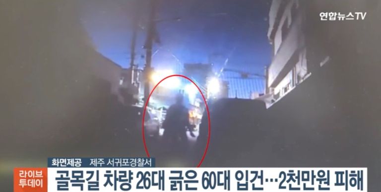 새벽 제주 서귀포시의 한 골목에서 뾰족한 물건으로 주차된 차량 26대를 긁어 2000만원 상당의 피해를 입힌 60대 남성이 경찰에 붙잡혔다. /연합뉴스TV