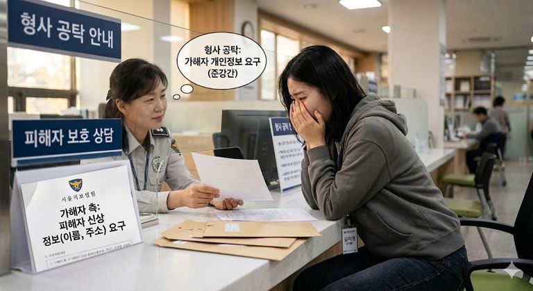 가명으로 수사받던 준강간 피해자가 가해자 측의 '형사 공탁'을 위한 개인정보 요구에 신상 노출 공포를 겪고 있다. / AI 생성 이미지