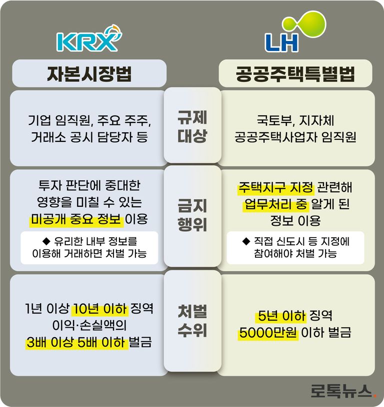 내부정보 이용한 투기⋯같은 행동을 해도 LH 직원과 거래소 직원의 처벌 수위는 천지 차이