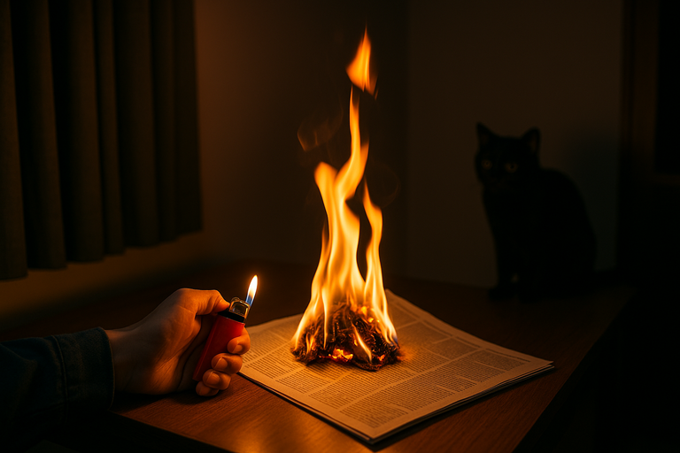 가족 문제로 스트레스가 쌓여 있던 어느 날 밤, 키우던 고양이가 계속 울자 A씨는 순간 격분했다. 손에 쥔 라이터로 방 안의 신문지와 휴지에 불을 붙였다.