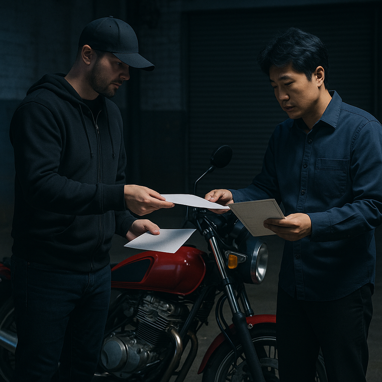 폐차를 맡긴 오토바이가 불법 판매된 후 사망사고를 일으켜, 원래 차주가 2억 원의 빚을 떠안을 위기에 처했다./챗 지피티 생성 이미지