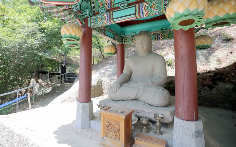 서울 종로경찰서는 지난 11일 오후 1시 30분쯤 청와대 관저 뒤편 '경주 방형대좌 석조여래좌상' 앞에서 50대 여성 A씨를 재물손괴 혐의로 현행범 체포했다. '미남불'로도 불리는 석조여래좌상은 9세기 통일신라 불상으로 지난 2018년 보물로 지정됐다.