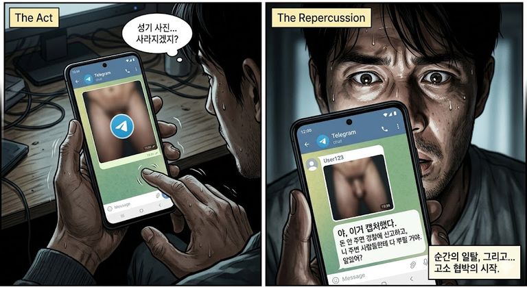 한 남성이 텔레그램 '사라지는 사진'으로 성기 사진을 보냈다가, '캡처했다'는 상대방으로 부터 고소 협박을 받았다./ AI 생성 이미지