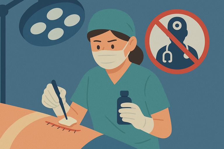 의사가 없는 상태에서 간호조무사가 혼자 수술 부위 소독을 한 사건에 대해 법원이 벌금형을 선고했다.