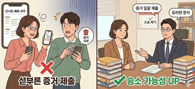 변호사들은 '무조건 승소'를 원한다면 증거를 모아 변호사와 상담한 뒤, 소송과 함께 한 번에 제출하는 것이 가장 유리한 전략이라고 입을 모은다.