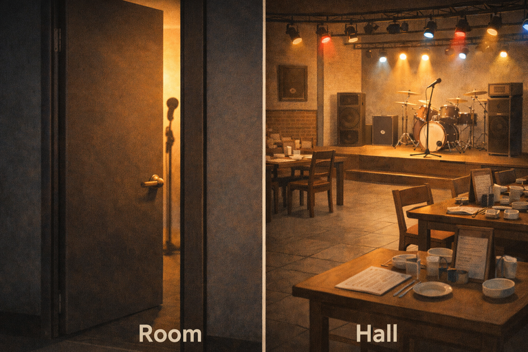 실제로 일반음식점에 이런 무대 장치를 설치했다가 법정에 선 사장님이 있다. 검찰은 이를 명백한 불법 시설물로 보고 재판에 넘겼지만, 법원은 사장님의 손을 들어줬다. 핵심은 그 무대가 방에 있었느냐, 홀에 있었느냐의 차이였다.