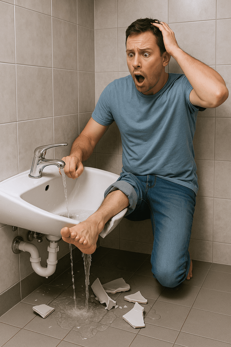 세면대에서 발을 씻다 파손된 경우 수리비 책임은 누구에게 있을까?/챗 지피티 생성 이미지