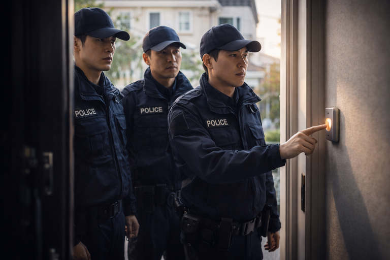경찰관이라고 밝히면 소속, 계급, 성명과 방문 목적을 명확히 물어야 한다. 압수·수색이나 체포 목적이라면 반드시 영장 제시를 요구해야 하며, 영장이 없다면 문을 열어줄 의무는 없다.