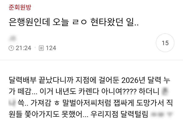 3일 한 온라인 커뮤니티에 올라온 사연이 누리꾼들을 황당하게 만들었다. 자신을 은행원이라고 밝힌 글쓴이는 "달력 배부가 끝났다니까 지점에 걸어둔 2026년 달력을 누가 떼어갔다"며 "잽싸게 도망가서 직원들이 쫓아가지도 못했다"고 토로했다.
