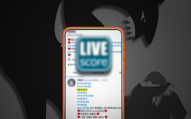 불법 도박사이트 업자들이 앱에 인증한 가짜 아이디를 개당 6000원씩 주고 사들인다는 소식이 퍼지자 '라이브스코어(LIVE score)'가 학교폭력 가해자들의 용돈 벌이 놀이터로 전락하고 있다. /셔터스톡⋅트위터 캡처⋅편집=조소혜 디자이너