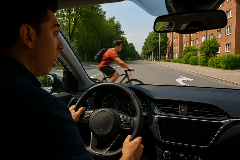 왕복 2차선 도로, 우회전을 앞둔 운전자 A씨의 차량 앞으로 자전거 한 대가 쏜살같이 스쳐 지나갔다. 보행자에게 길을 양보하고, 반대편 차선까지 확인한 뒤 막 출발하려던 찰나였다.
