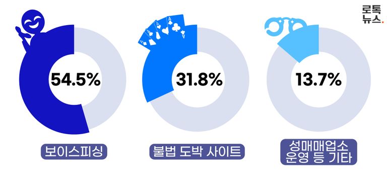 이들은 주로 어떤 범죄를 저질렀고, 그 수익을 은닉했을까. 우선, 보이스피싱이 가장 많았다. 전체 44명 중 24명(약 54.5%)이 보이스피싱 조직원으로 활동했고, 이 과정에서 얻은 수익을 은닉했다.