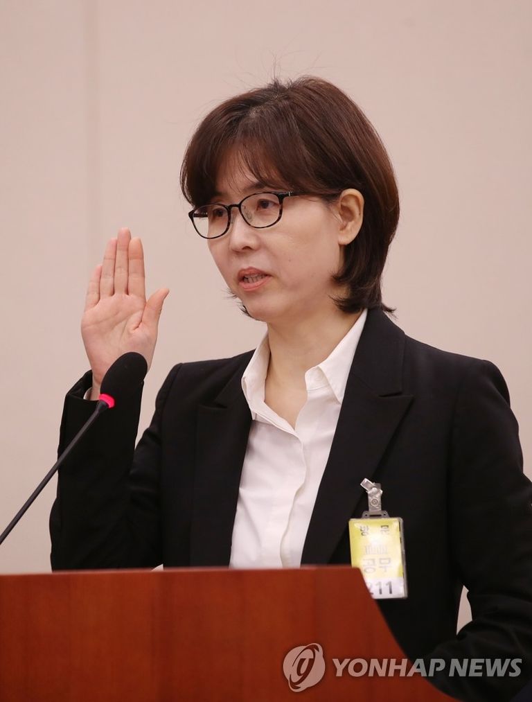 지난 10일 국회서 열린 인사청문회에서 선서하는 이미선 헌법재판관 후보자=연합뉴스 김인철 기자(C)저작권 연합뉴스