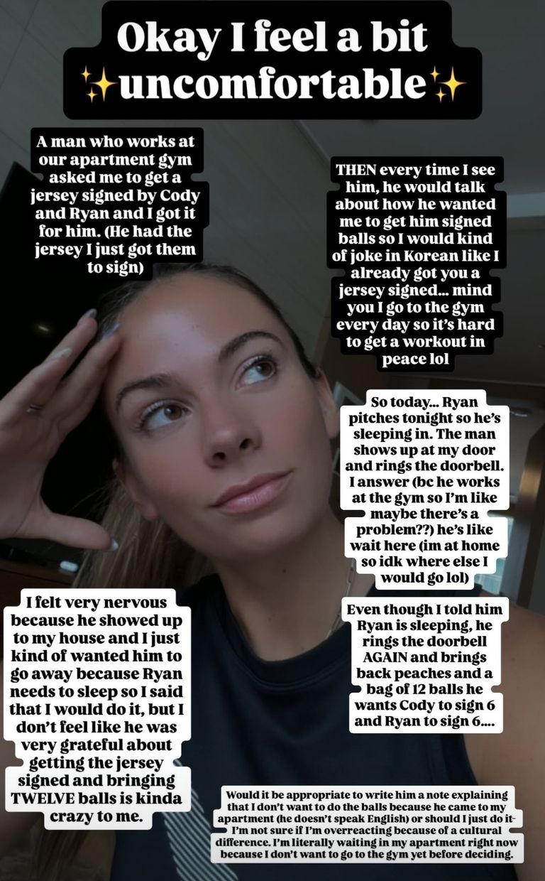 헤일리의 글에 따르면, 직원은 잠든 와이스 선수를 깨워 사인을 받아내려 초인종을 반복해서 눌렀다. 헤일리는 "너무 긴장됐고 불안했다"고 당시 심경을 토로했다.