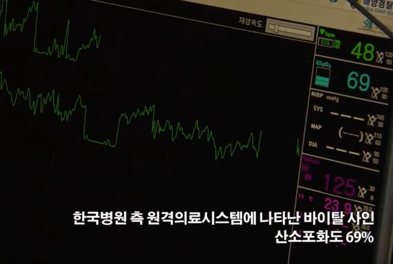 원격 의료를 담당한 의사는 A군의 산소포화도가 69%로 뜨자 "응급처치를 지속하고 병원으로 이송하라"고 지시했다. /4·16세월호참사 특별조사위원회