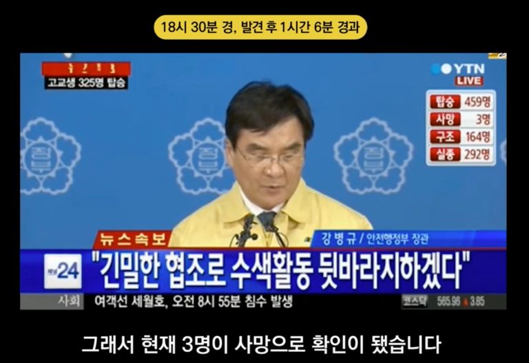 가습기살균제사건과 4·16세월호참사 특별조사위원회(특조위)는 이날 기자간담회를 열고 이 같은 내용을 공개했다. 발표 내용을 종합하면 해경은 사고 당일 오후 5시 24분쯤 단원고 학생 A군을 세월호 인근 바다 위에서 발견한 뒤 오후 5시 30분쯤 해경 3009함으로 옮겼다.