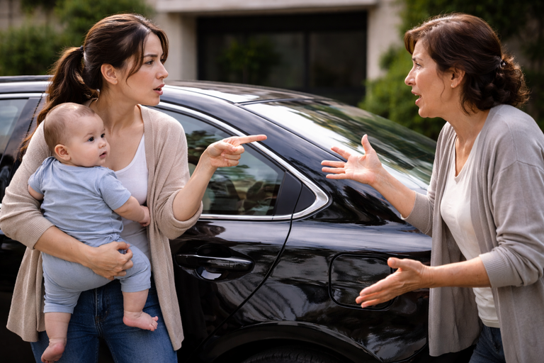 남편 사후 8개월 아기 엄마가 시어머니의 1% 지분 때문에 남편 차를 사용 못 하는 갈등을 겪고 있다./챗 지피티 생성 이미지