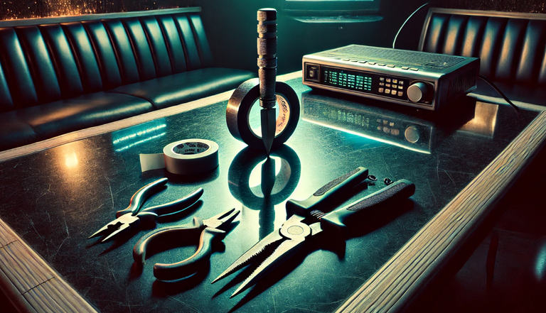 B는 05:05경 흉기인 사시미칼(총길이 35cm), 펜치, 테이프 4개를 가져와 탁자 위에 올려놓았다.