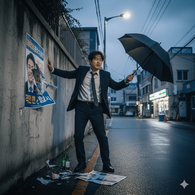 지난 5월, 술에 취해 비틀거리던 A씨가 무심결에 선거벽보를 훼손하는 사건이 발생했다. /제미나이 생성 이미지