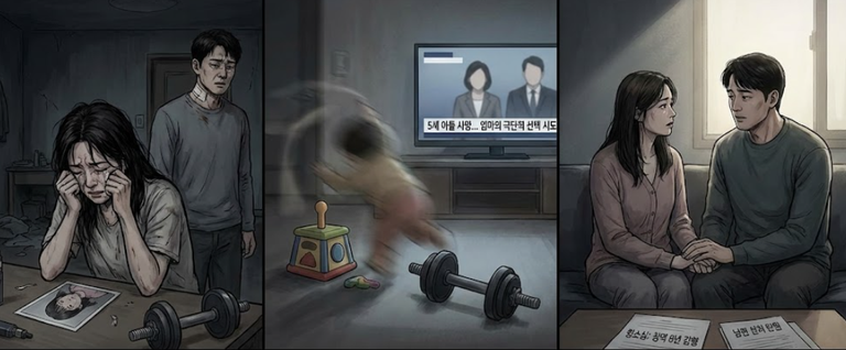 가장 참혹한 사건은 2024년 12월 20일에 발생했다. A씨는 자신의 부주의로 다섯 살 아들 D군의 머리 위로 아령을 떨어뜨리는 사고를 냈다. 피를 흘리는 아들의 모습을 본 A씨는 아들의 앞날을 비관하며 아들을 살해하고 자신도 목숨을 끊기로 결심했다.