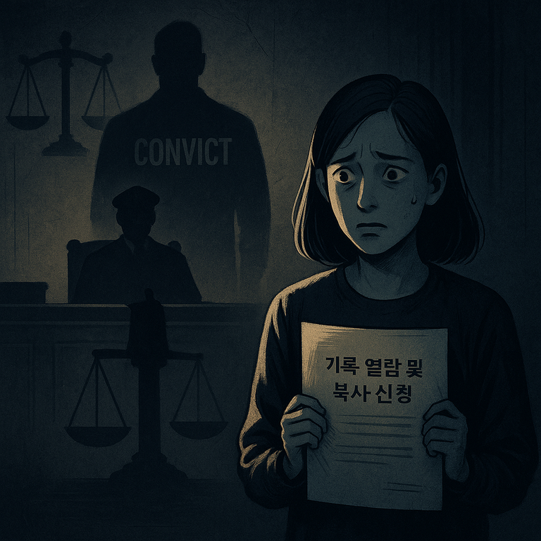 1심에서 유죄를 선고받고 법정 구속된 가해자. 끝났다고 믿었던 악몽이 '기록 열람 및 복사 신청'이라는 통지서 한 장으로 다시 시작됐다.
