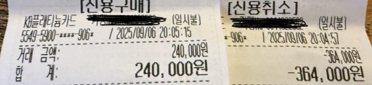 문제는 계산대에서 발생했다. 무심코 영수증을 확인한 A씨는 주문하지도 않은 금액 12만 4,000원이 더해져 결제된 사실을 발견했다. A씨가 문제를 제기하자 주인은 계산 내역을 확인조차 하지 않고 "잘못 계산한 것 같다"며 즉시 결제를 취소하고 24만 원으로 다시 결제했다.
