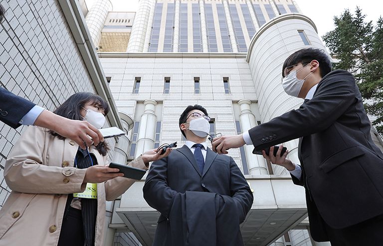 이미 음주운전으로 2번의 처벌을 받았으면서도 또 술을 마시고 운전을 하다가 대만인 유학생을 치어 숨지게 한 혐의를 받은 50대 남성. 이 남성은 2회 이상 적발된 음주운전자를 가중처벌하는 '윤창호법 위헌' 결정 후 이뤄진 파기환송심에서도 감형 없이 징역 8년을 선고받았다. 사진은 29일 파기환송심 선고가 끝난 뒤 취재진 질문에 답하고 있는 피해자 측 변호사. /연합뉴스
