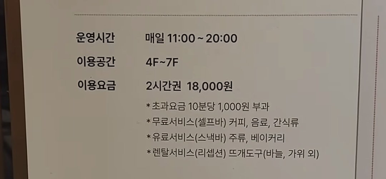 서울 성수동 소재 '뜨개 라운지'의 이용 요금 안내 사진. /X 캡처