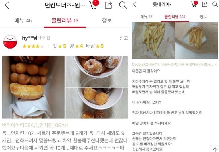 배달 애플리케이션 주문 리뷰에는 "배달원들이 음식을 빼먹은 것 같다"는 의심 글을 심심치 않게 볼 수 있다. /배달 애플리케이션 캡처
