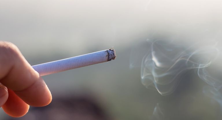 유모차 안에 있던 3살배기 아이가 하늘에서 날아온 담배꽁초에 화상을 입었다. 아파트와 같이 높은 곳에서 담배를 피고 있는 모습. /셔터스톡
