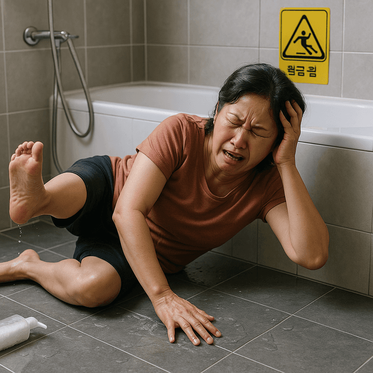 퇴실을 준비하던 A씨는 물기 흥건한 모텔 욕실에서 미끄러져 머리를 부딪쳤다. 두피가 찢어지는 부상, 전치 3주 진단. 하지만 돌아온 것은 "미끄럼 주의 스티커를 붙였으니 책임없다"는 모텔 측 보험사의 냉정한 답변이었다.